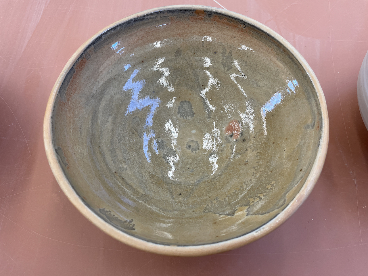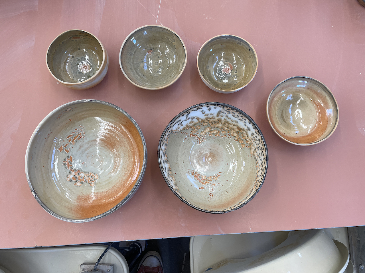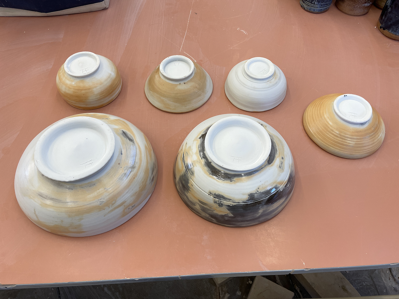 Tops and bottoms of 5 new bowls - the bowl to the right is from a previous firing and is included for comparison.