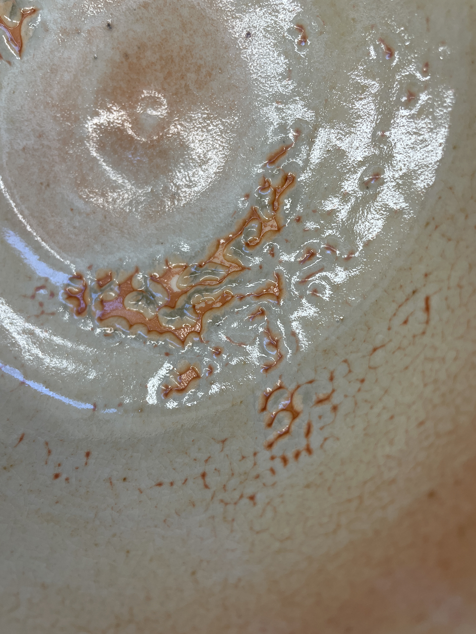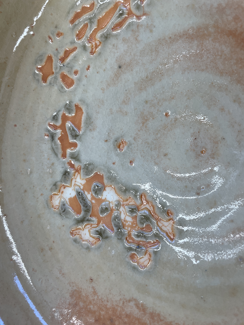 All of the shino pieces in this firing, not just these 5, were affected similarly.